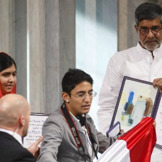 El joven explicó que su intención al acercarse a los galardonados era denunciar la desaparición de estudiantes en México, por lo que quería hacer uso del micrófono.