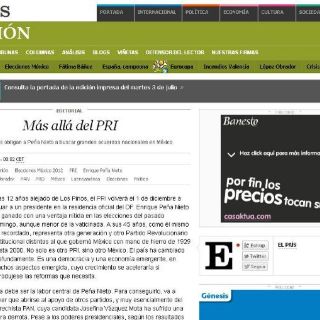 ''Enrique Peña Nieto ha ganado con una ventaja nítida en las elecciones del pasado domingo, aunque menor de la vaticinada. A sus 45 años, como él mismo ha recordado, representa otra generación y otro Partido Revolucionario Institucional distintos al que gobernó México con mano de hierro de 1929 hasta 2000''.