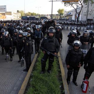 Las policías federal y capitalina dispusieron un cerco a los manifestantes que bloquearon Boulevard Puerto Aéreo.