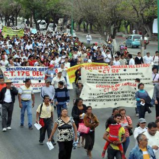 TUXTLA GUTIÉRREZ, CHIAPAS (01/FEB/2013).- Trabajadores de la educación de la sección 40 del SNTE marcharon hoy por las principales calles de la ciudad en protesta por la Reforma Educativa, se apostaron en la entrada del Congreso del estado e impiden la salida de diputados y del personal.
