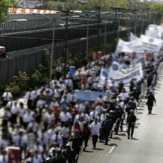 En la zona, una valla de granaderos se mantiene a 100 metros del bloqueo de los maestros.