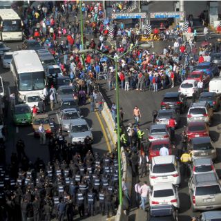 Previo al inicio de su movilización, los maestros y elementos de la Policía capitalina protagonizan una discusión. Mientras los profesores pretendían pasar con camiones al Hemiciclo a Juárez, granaderos se los impidieron.