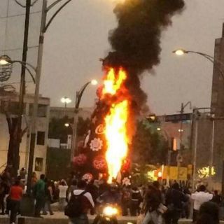 Este viernes, en medio de la protesta convocada por el alza al incremento del boleto del metro, jóvenes incendiaron el árbol de navidad que colocó una empresa refresquera en Insurgentes y Reforma.