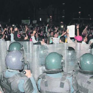 Manifestantes lanzan huevos y piedras contra el Tribunal Electoral