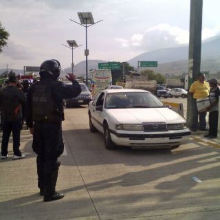 En tanto unos 400 elementos de la Policía Federal que acudieron al bloqueo, cuando la vía llevaba obstruida tres horas, permanecen con escudos de igual manera replegados.