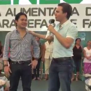 El gobernador señala con la mano al joven, le indica a la mujer que se dirija a éste; pero, de pronto el mandatario estatal lanza una bofetada al joven.