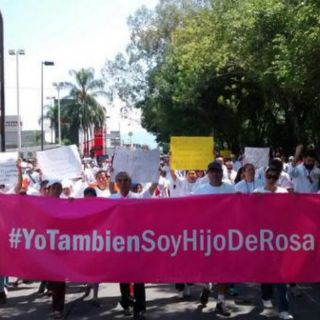 Los organizadores regalaron playeras blancas con la leyenda “Yo también soy hijo de Rosa”, y entre las personas que se están concentrando hay jóvenes que aseguran haber estado internados.