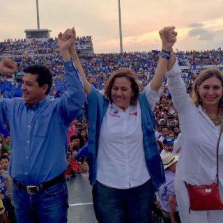 La esposa del ex presidente Felipe Calderón participó en el cierre de campaña del senador con licencia en esa ciudad fronteriza, donde también participó el presidente del Senado, Roberto Gil Zuarth.