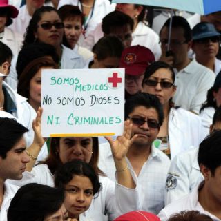 Al grito de sin "recursos no hay salud", miles de médicos aplaudieron a su compañero Rafael Cervantes, quien dijo que el juicio sumario de los 16 médicos de Guadalajara es sólo el reflejo de que el sector salud está enfermo y rebasado.