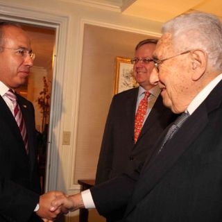 El Presidente Calderón estuvo acompañado por los secretarios de Relaciones Exteriores, Patricia Espinosa Cantellano; de Hacienda y Crédito Público, Ernesto Cordero Arroyo; de Economía, Bruno Ferrari, y el embajador de México en Estados Unidos, Arturo Sarukhan.