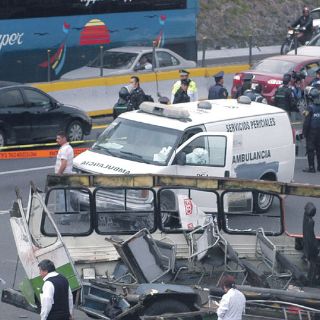 CIUDAD DE MÉXICO (06/NOV/2011).- Un microbús de la Ruta 1 se quedó sin frenos al ingresar al Viaducto Tlalpan y se impactó contra una camioneta, son saldo de seis personas fallecidas, además de al menos 20 lesionados. La unidad del transporte público del Distrito Federal prácticamente se desbarató tras el choque aparatoso.