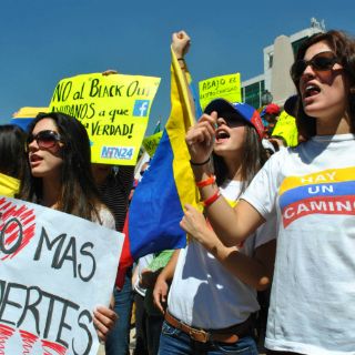 Durante la protesta pacífica, los manifestantes exigen la destitución de Nicolás Maduro