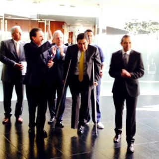 CIUDAD DE MÉXICO (04/FEB/2014).- En muletas, caminó de su oficina al salón de sesiones el coordinador del Partido de la Revolución Democrática (PRD) en el Senado, Miguel Barbosa, a reintegrarse a los trabajos del pleno, luego de una enfermedad que en noviembre lo tuvo en peligro de morir, y en la que perdió un pie.