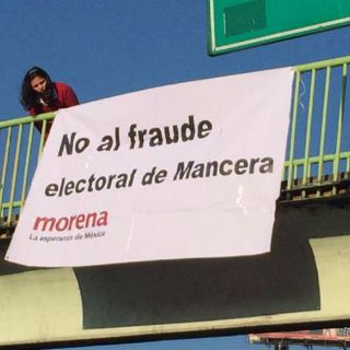 Acompañado por simpatizantes de Morena, el presidente del instituto político, Martí Batres Guadarrama, colgó carteles en los pasos peatonales del Viaducto Miguel Alemán y Eje Central en los que se lee: "No al fraude electoral de Mancera".