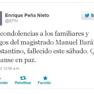 El presidente Enrique Peña Nieto expresó sus condolencias a familiares y amigos del magistrado Manuel Baráibar Constantino, quien murió este sábado.