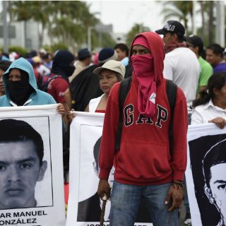 Los padres de familia llevan consigo carteles con los nombres de los 43 estudiantes de Ayotzinapa desaparecidos desde el pasado 26 de septiembre.