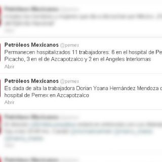 En su cuenta de Twitter, la paraestatal menciona que del total de heridos, seis se encuentran en el hospital de Pemex Picacho, tres en el de Azcapotzalco y dos en el Hospital Ángeles de Interlomas.