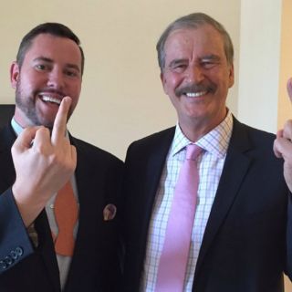 Fue en una de estas entrevistas donde Vicente Fox volvió a dar de qué hablar. Al concluir una plática con el medio estadounidense Kick Ass Politics, el ex mandatario posó con el presentador Ben Mathis y ambos le enviaron el conocido gesto obsceno a Donald Trump.