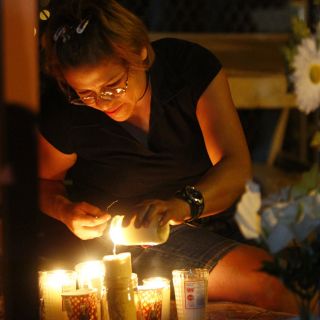 En el exterior del edificio se colocaron 49 cruces y veladoras en memoria de los fallecidos.