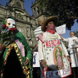 Los familiares de los normalistas acuden a una misa en la Basílica al terminar su marcha en la Ciudad de México