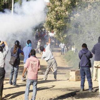 CNTE) sostienen un enfrentamiento la tarde de este jueves debido a que los profesores intentan recuperar una escuela en el municipio de San Pedro Mártir.