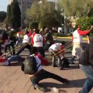 La mañana de hoy jueves, un grupo de manifestantes encabezados por Arne, que portaban resorteras, lanzaron pañales sucios a la sede del PRI, ubicada en avenida Insurgentes.