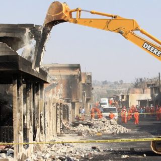 Pemex) inició los trabajos de demolición de casas en este municipio, a ocho días de la explosión del oleoducto en San Martín Texmelucan, Puebla.