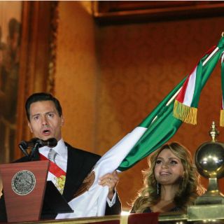 El Mandatario, acompañado de la primera dama, Angélica Rivera, salió al balcón de Palacio Nacional al filo de las 23:00 horas y recibió el Lábaro Patrio de manos de una escolta.