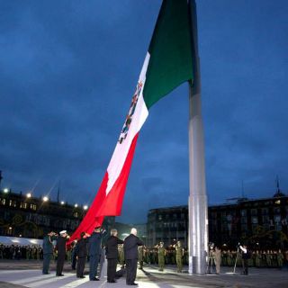 Acompañado del secretario de la Defensa, Salvador Cienfuegos; de Marina, Vidal Soberón; el comisionado de Seguridad Nacional, Manuel Mondragón, así como del encargado de Protección Civil, Luis Felipe Puente, el Presidente se apostó en el Zócalo capitalino para rememorar.