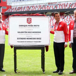TOLUCA, ESTADO DE MÉXICO (20/JUL/2017).- Tras inaugurar oficialmente el nuevo estadio de futbol profesional "Nemesio Díez", el Presidente Enrique Peña Nieto descartó, por el momento, cambios en el gabinete presidencial.