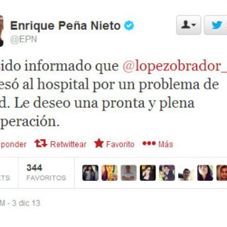 Enrique Peña Nieto deseó un pronta recuperación a Andrés Manuel López Obrador, luego de que se diera a conocer que este último se encuentra hospitalizado, según fuentes del Gobierno del Distrito Federal.