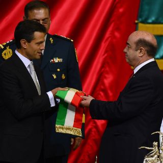 Allí, el mexiquense recibió la Banda Presidencial del ahora ex presidente Felipe Calderón, quien antes de entregársela la besó.