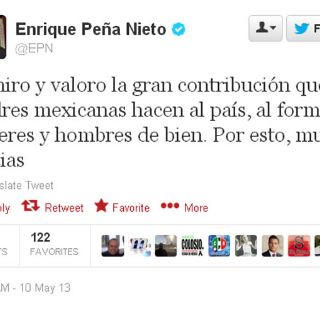 CIUDAD DE MÉXICO (10/MAY/2013).- El Presidente de la República, Enrique Peña Nieto felicitó y agradeció a las madres mexicanas por su valor y las contribuciones que hacen al país.