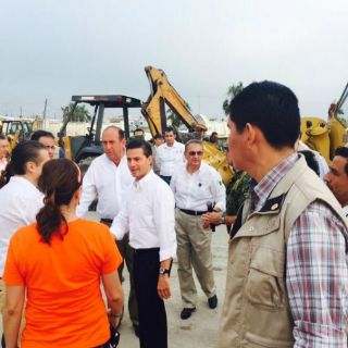 Junto con el Presidente se encuentran el secretario de Gobernación, Miguel Ángel Osorio Chong; el gobernador de Coahuila, Rubén Moreira; así como el coordinador Nacional de Protección Civil, Luis Felipe Puente.