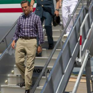 El Mandatario arribó al aeropuerto de Aguascalientes, donde fue recibido por el gobernador Carlos Lozano y luego se trasladó al teatro Morelos de la capital aguascalentense.