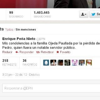 "Mis condolencias a la familia Ojeda Paullada por la pérdida de Don Pedro, quien fuera un notable servidor público" escribió Peña Nieto en su cuenta de Twitter.