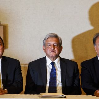 En la rueda de prensa, acompañaron también a López Obrador los presidentes nacionales de las fuerzas políticas que lo postularon: Jesús Zambrano, del PRD; Alberto Anaya, del Partido del Trabajo y Luis Walton, del Movimiento Ciudadano.