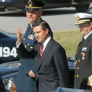 Le acompañan su esposa Angélica Rivera, José Antonio Meade y el director general de Comunicación Social de la Presidencia