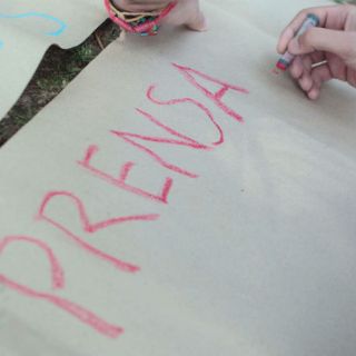 Reporteros y fotógrafos realizan el bloqueo con motivo del Día del Periodista