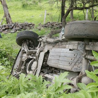 Vuelca el vehículo oficial en el que intentaban dar alcance a un grupo de sujetos armados