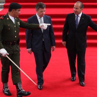 El presidente Santos felicitó, por su parte, a Felipe Calderón "en nombre del pueblo de Colombia por su valor, por la forma en que ha enfrentado al crimen organizado, que representa altos costos que se tienen que pagar".