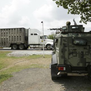 Del interior de la camioneta Cheyenne aseguraron tres armas largas de alto calibre, un fusil Barret calibre 50 milímetros, 33 cargadores abastecidos, algunos cartuchos útiles sueltos, una granada de fragmentación, cuatro chalecos antibalas y hieleras, entre otros objetos.