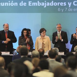 Por su parte, la secretaria de Relaciones Exteriores, Patricia Espinosa, exhortó al cuerpo diplomático acreditados en el exterior a redoblar esfuerzos para difundir los avances del país y lograr que la imagen siga en recuperación en el ámbito internacional.