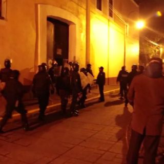 GUADALAJARA, JALISCO (07/OCT/2014).- Esta madrugada, alrededor de las 04:00 horas, elementos de la policía estatal desalojaron a los manifestantes que se mantenían en las afueras de la presidencia municipal de San Andrés Cholula,