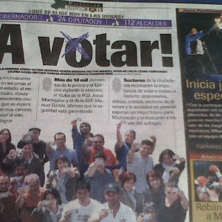 MORELIA, MICHOACÁN (13/NOV/2011).- La prensa de hoy en la capital del Estado de Michoacán hace referencia a este domingo como el día de la hora de salir a votar. Algunos califican a esta elección como la más cerrada desde 1992.