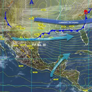 En tanto, este viernes la masa de aire polar del frente frío 30, que en su desplazamiento al sureste se combina con la humedad proveniente del Océano Pacífico, se extenderá desde la costa norte de Veracruz y cruzará el oriente y el norte del territorio nacional.