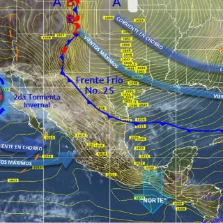 Frente Frío Número 25 se prevén lluvias y descenso de temperatura en gran parte de México, así como nevadas en el norte, centro y oriente de la república.