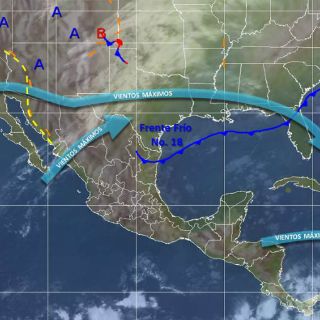Mientras tanto, la masa de aire frío asociada causará bajas temperaturas en zonas del norte y noreste de la República, además de vientos de componente norte y noreste de 45 kilómetros por hora en el litoral del Golfo de México.