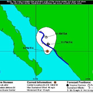 CULIACÁN, SINALOA (28/SEP/2012).- La tormenta tropical 'Norman' estaría tocando tierra la tarde de este sábado en la zona de la bahía de Altata, municipio de Navolato, reportó la Dirección de Protección Civil de Sinaloa.