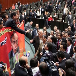 "¿Tú dejarías conducir a un borracho tu auto? ¿No, verdad? ¿y por qué lo dejas conducir el país?", se leía en el mensaje a gran escala desplegado por los diputados que incluía una fotografía de Felipe Calderón.